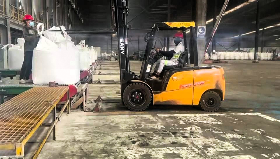 该公(gōng)司主(zhu)要生(sheng)産(chan)氯化钾及(ji)氯化钠等(deng)高(gao)腐蚀産(chan)品(pin),客戶(hu)過(guo)去大(da)多(duo)使用(yong)傳(chuan)统燃油叉車(che)進(jin)行搬运作(zuò)业,此次設(shè)備(bei)更新(xin)主(zhu)要诉求爲(wei)節(jie)能(néng)降本(ben)、绿色生(sheng)産(chan)。根据客戶(hu)的(de)工(gong)况需求,爲(wei)其推荐了(le)4吨高(gao)压锂電(dian)平衡重(zhong)叉車(che),与傳(chuan)统燃油叉車(che)相比,三一(yi)電(dian)動(dòng)叉車(che)能(néng)節(jie)省约30%运營(ying)成(cheng)本(ben)。面对重(zhong)工(gong)况,三一(yi)提供了(le)如下解决方(fang)案: